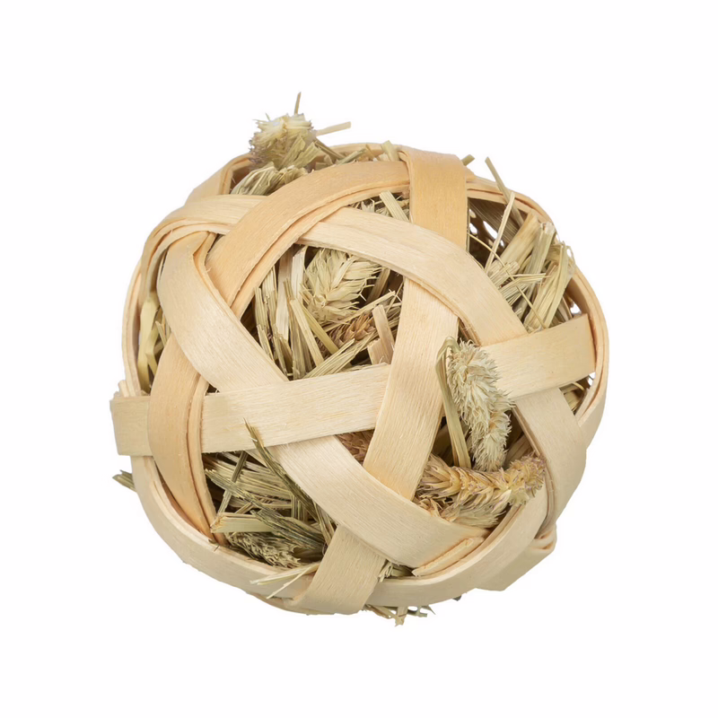🧠 Enrichissement & anti-ennui : La forme sphérique incite à pousser, chasser et explorer. Dispersez plusieurs balles en bambou pour varier les trajectoires, ou cachez quelques brins d’herbes sèches/feuilles au cœur du jouet pour déclencher des comportements de foraging.