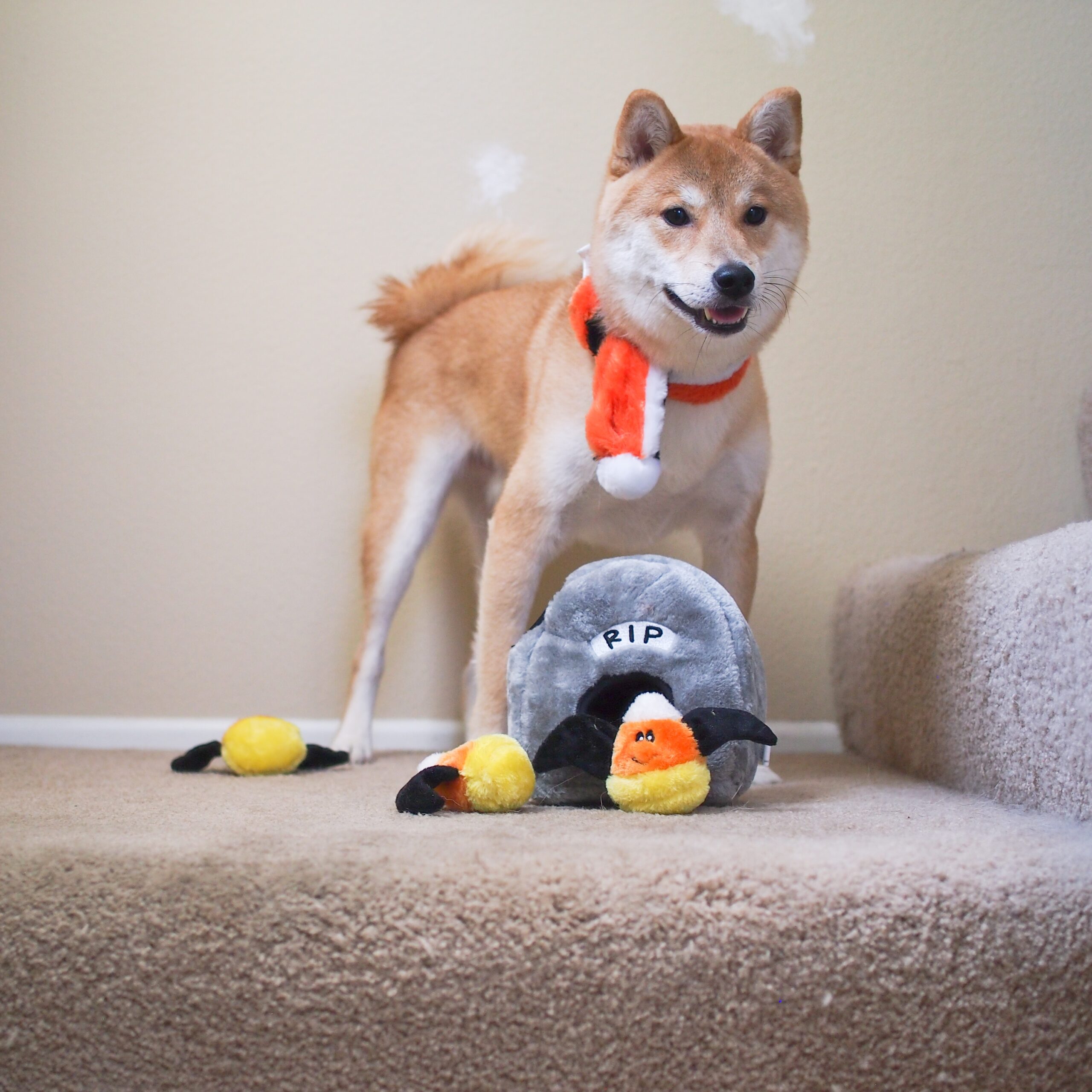 Offrez à votre animal des moments de jeu captivants et stimulants avec la peluche Burrow Pierre Tombale ZippyPaws Pierre Tombale d’Halloween ! 🦇🎃🐾